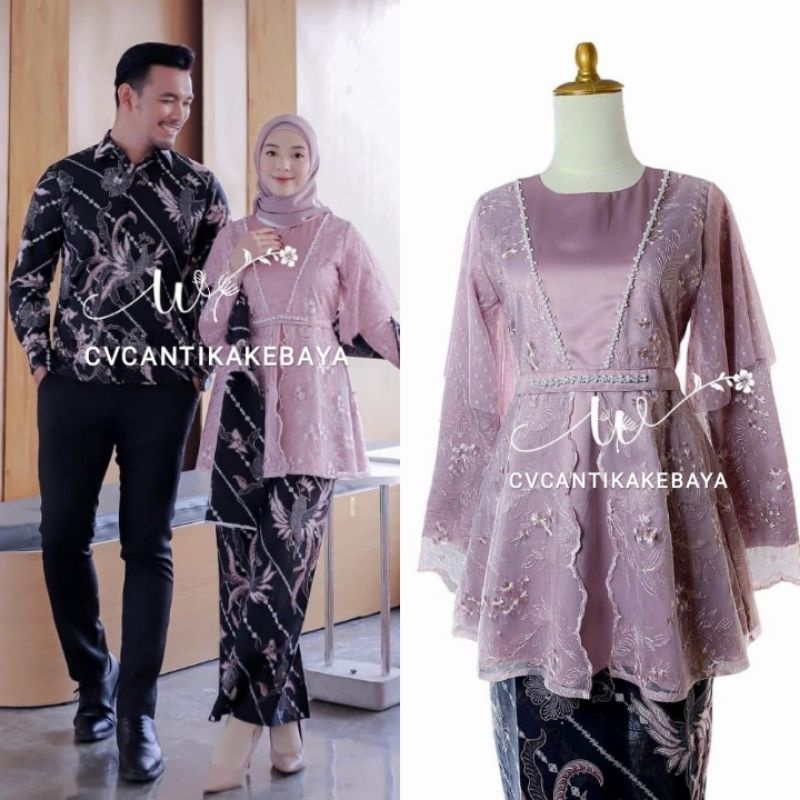 Beli couple baju kebaya batik tulle mutiara dusty pink lamaran tunangan wisuda terbaru di shopee.